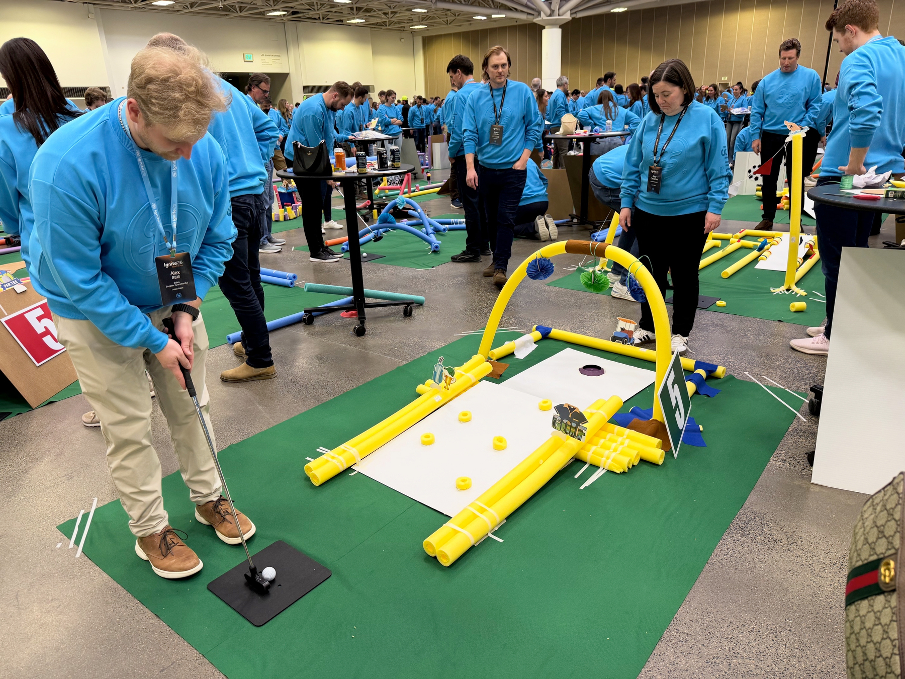 Our SPS Ignite 2026 Give Back event tonight included building a mini-golf course with pool noodles and cardboard and then each team playing the course. I found it much more difficult than it seemed. We then packed over 4,000 bags of goods for Special Olympics athletes and family members!