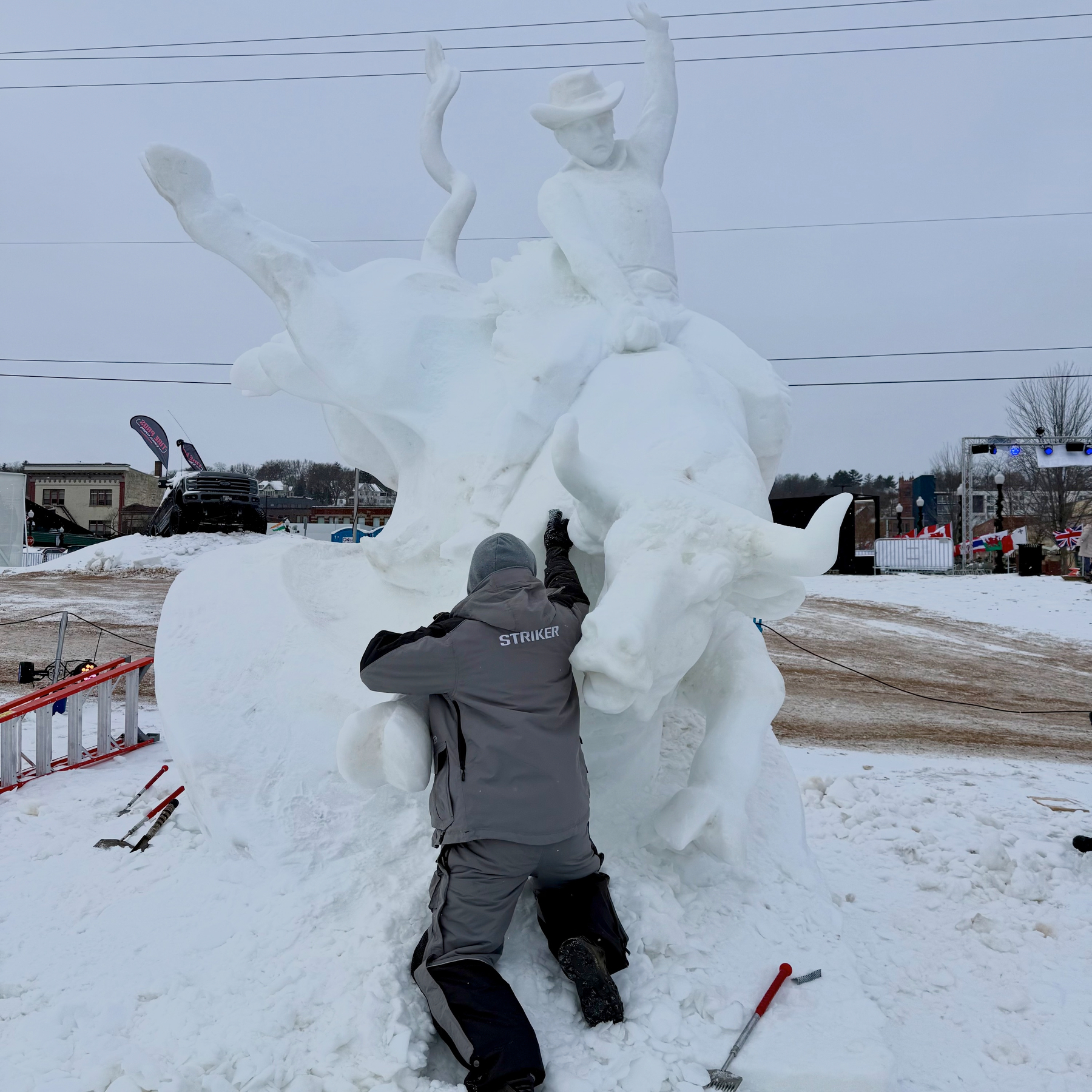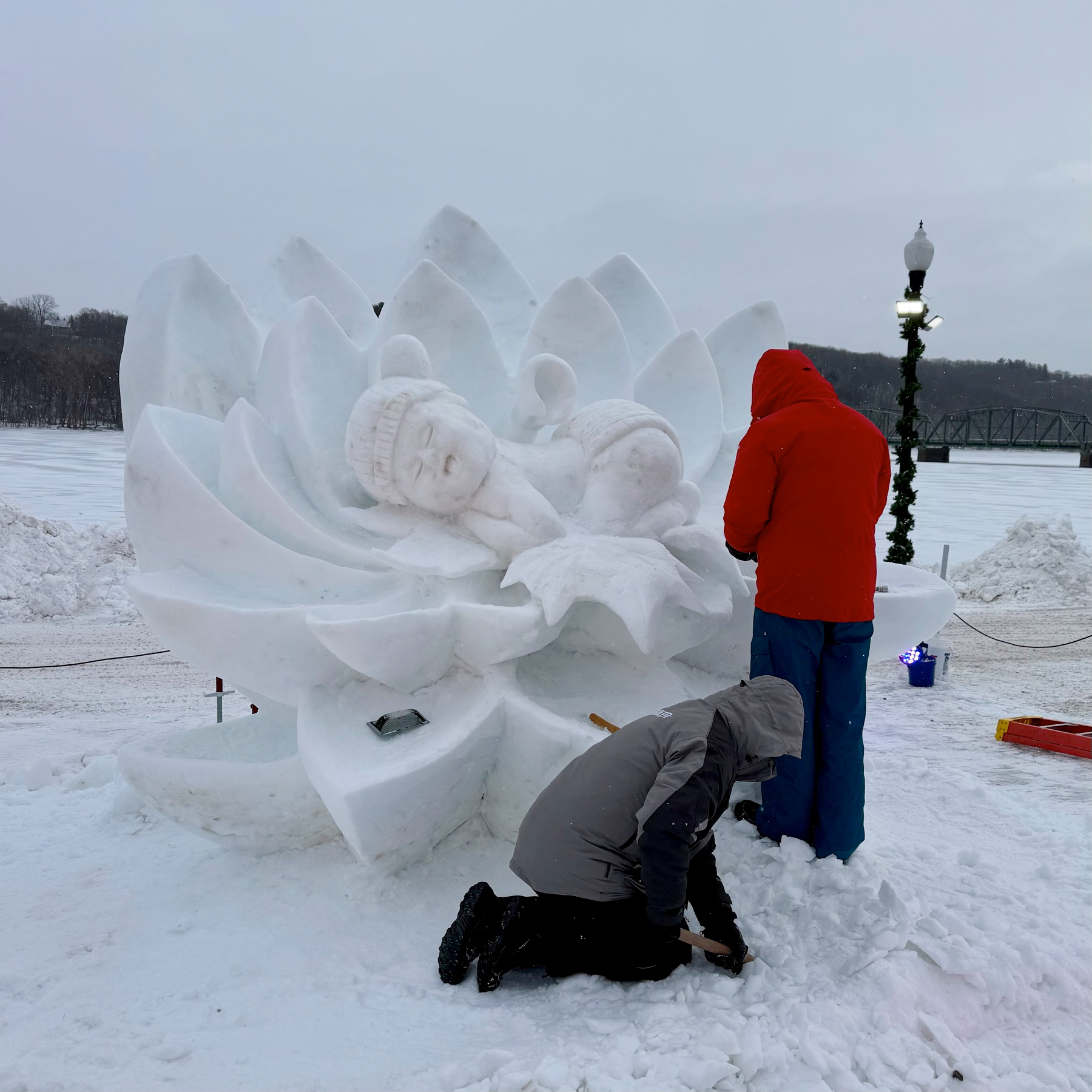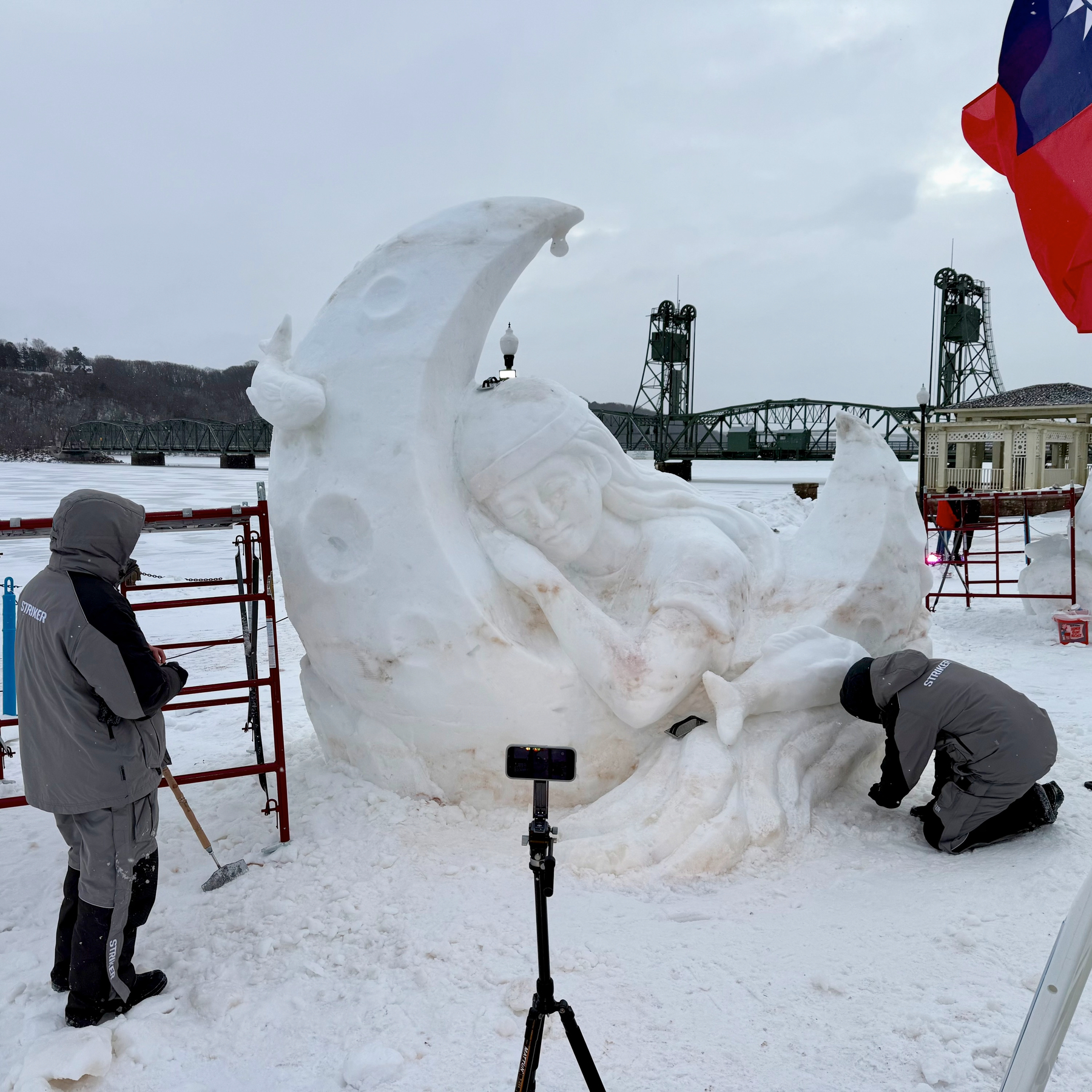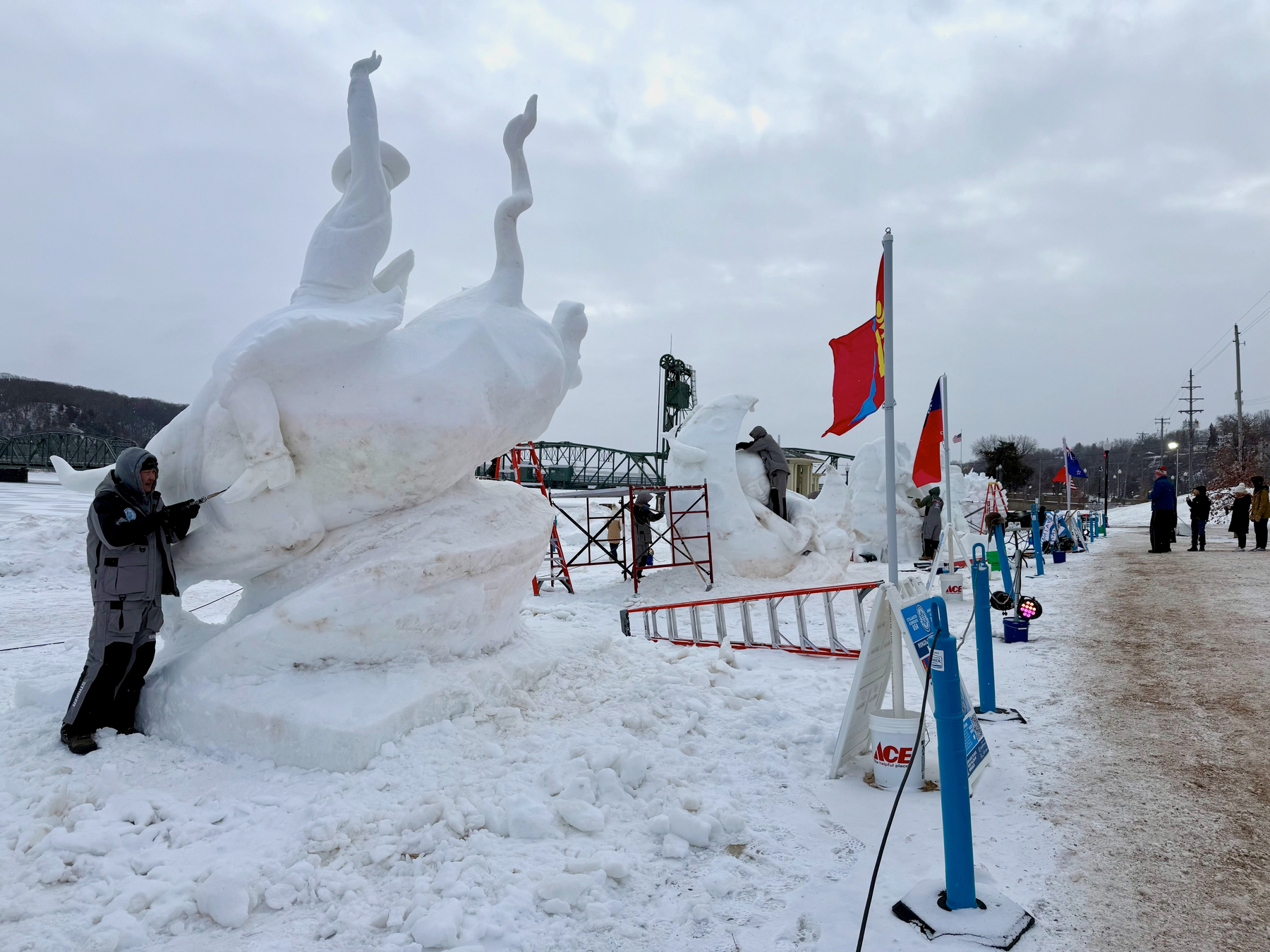 It was a very cold morning but we made it out to see the World Snow Celebration and the snow sculptures. Teams were working towards the deadline of completing their sculptures. They were amazing. We also did the Peoples Choice votes. I voted for Team Falcon of Mongolia and Tammy went for Team Warm Your Cold Brits.