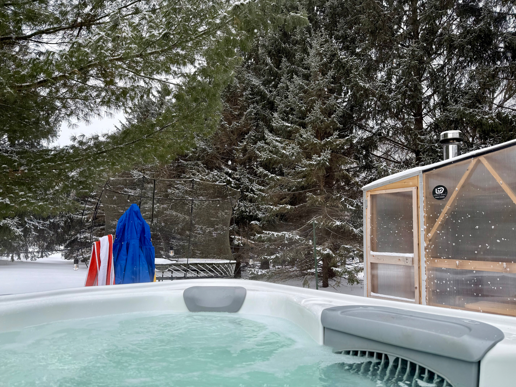 Crisp morning with light snow. Perfect time for a soak. ❄️🔥💦