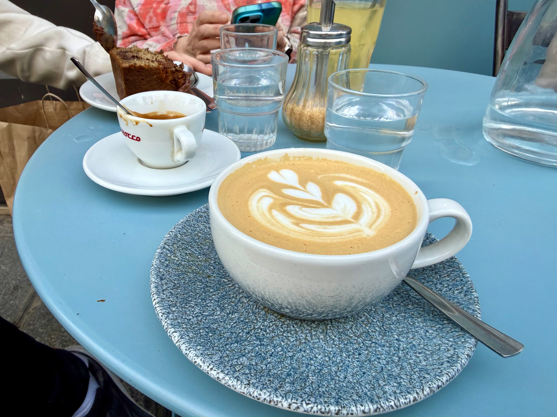 Afternoon cappuccino with espresso starter at Strada in Paris.