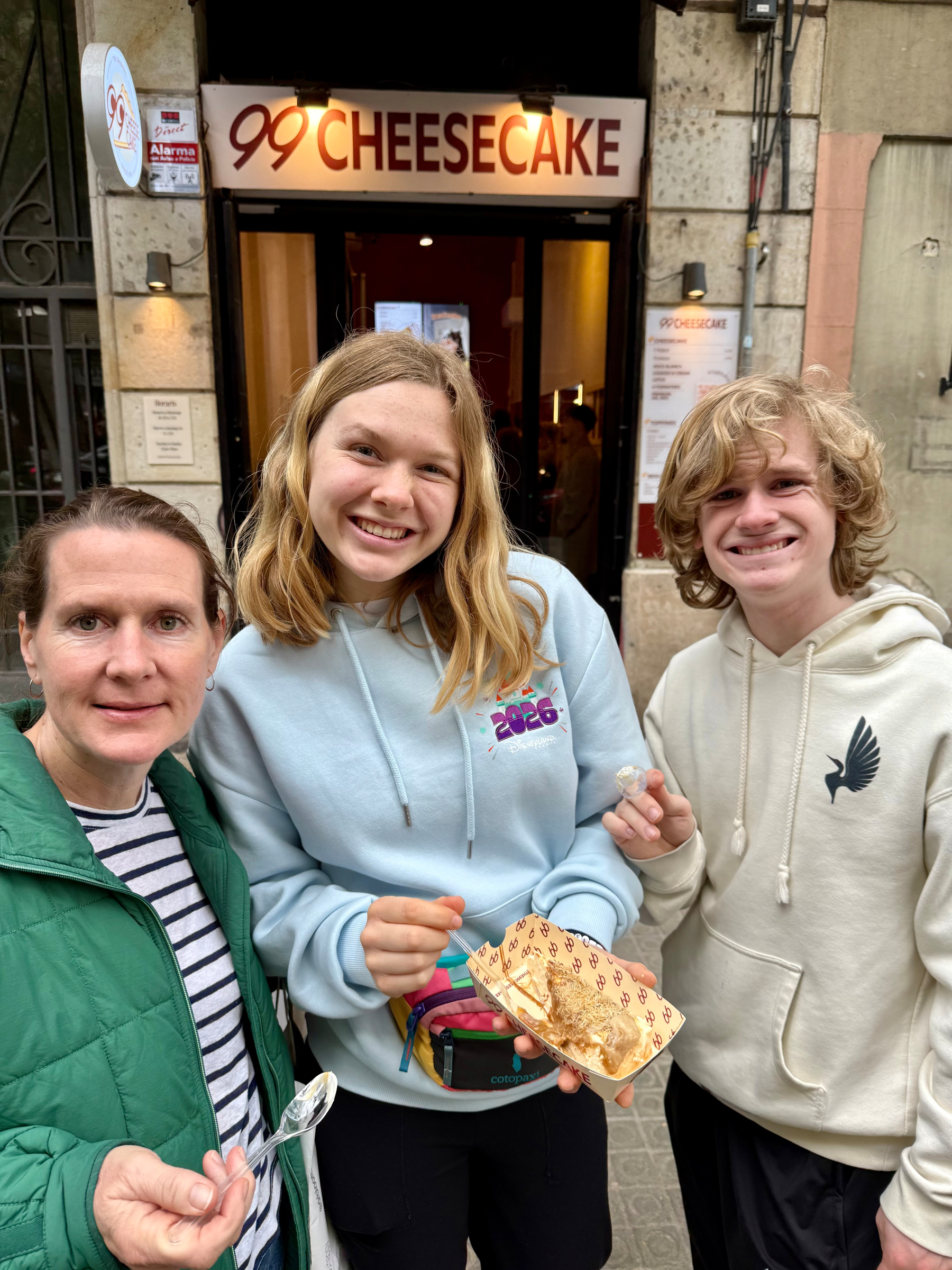 99 Cheesecake is one of Mazie’s absolutely favorite spots in Barcelona. We have to agree! Her favorite is Lotus Crème, Kinder Bueno Blanc Crème, Kataifi.