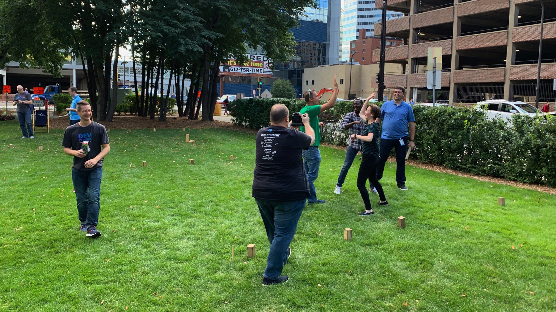 TeamSPS had a great time playing Kubb today, connecting with colleagues, and having a fun time. We weren’t able to have this event in 2020 due to COVID-19, but thanks to vaccines we were able to throw some batons together! Several people commented how much they loved this event. Here are some selected photos from Tim Van Cleave who was so generous to volunteer as official photographer! He has an entire album of additional shots as well.